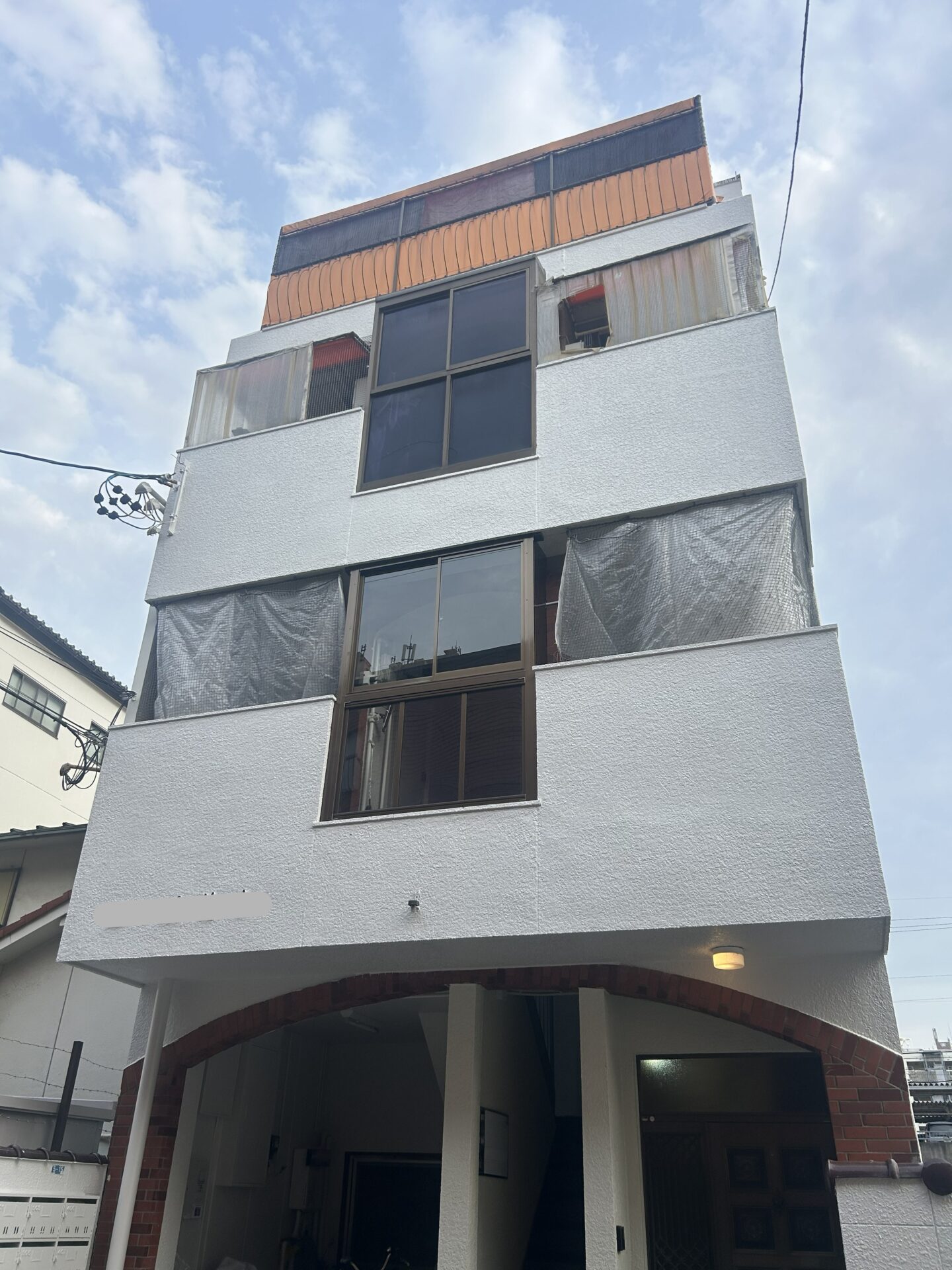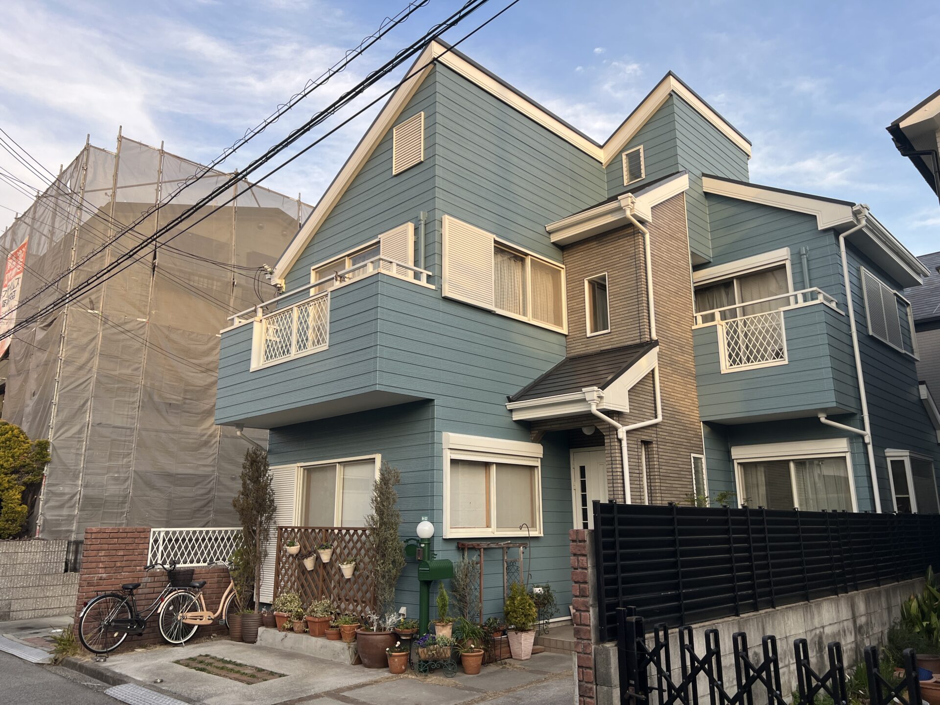 仮設足場・洗浄・下地処理・下塗り・上塗り(2回)