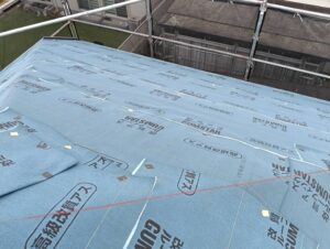 既存屋根の汚れを高圧洗浄で除去後、既存屋根の上に防水シートを上貼りし