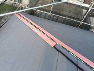 その上に断熱性・防露性・軽量性・耐候性に優れたガルバリウム鋼板製の屋根材を