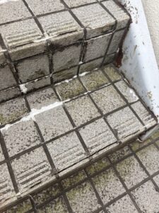 階段のタイルが割れや剥がれてきており、汚れも気になるので綺麗にしてほしいとのご要望でした。