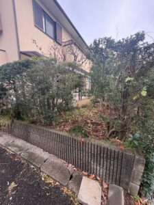 庭にある木や石が邪魔なので、この機会に境界の部分も併せて綺麗にリフォームしたいとのご要望でした。